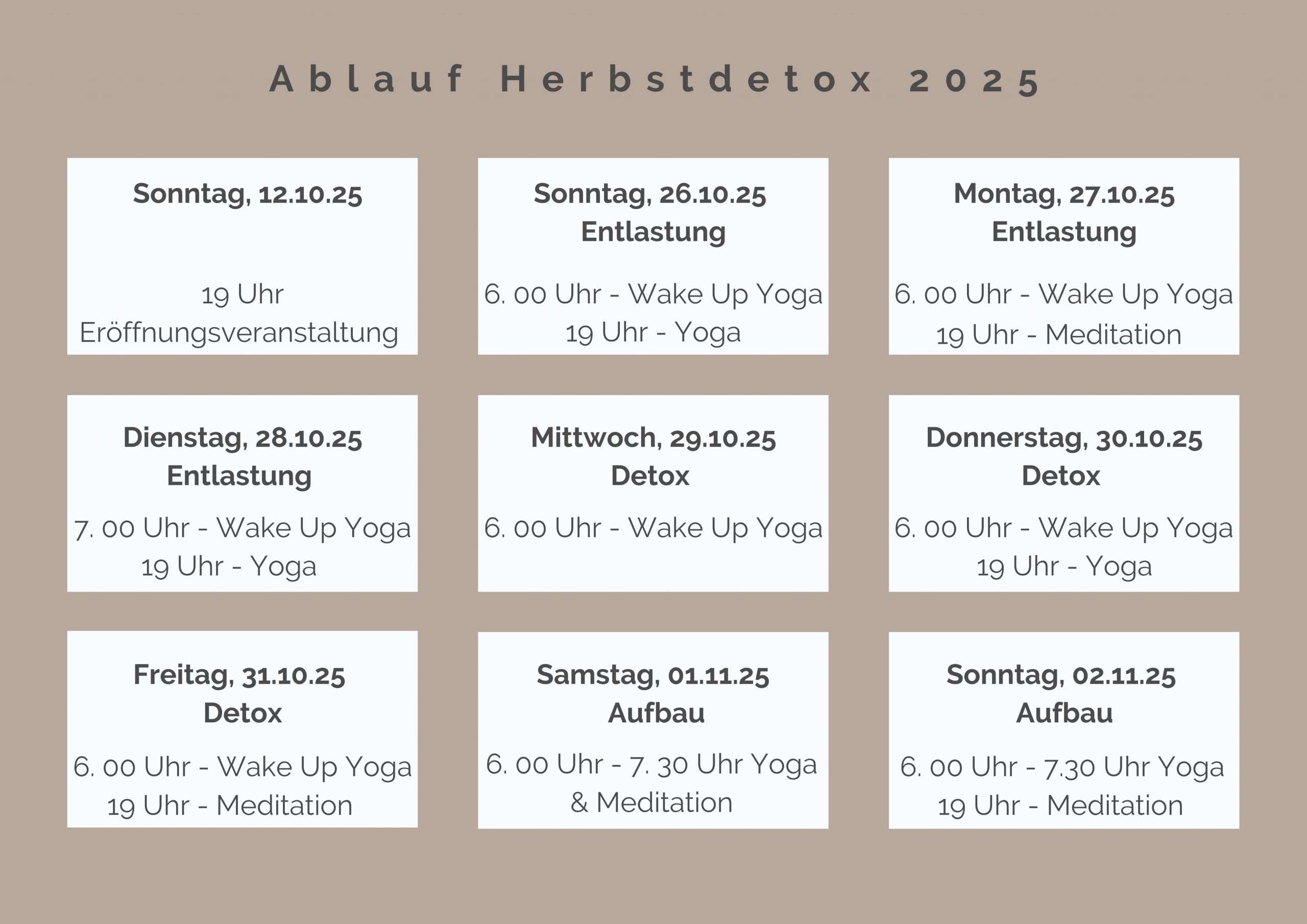 - Zweimal täglich Meditation und Yoga um deinen mentalen Detox zu unterstützen