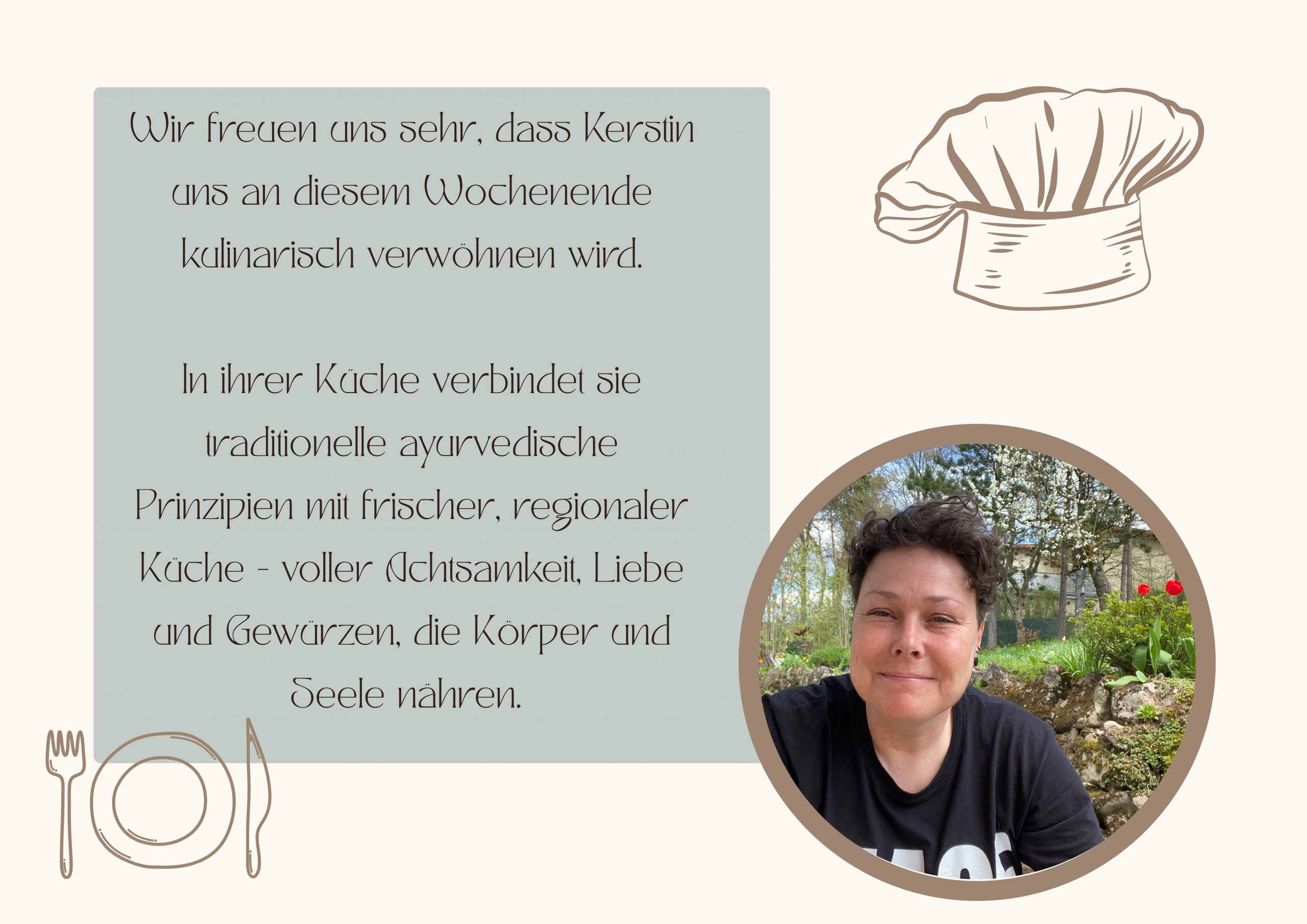 Kerstin, Ayurveda- und Retreatköchin, verwöhnt uns in den Pausen mit leckeren und vor allem nährenden Gerichten.